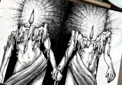 When touching the paper with the liner I kind of feel the connection between my inner self and the Universe itself where ink is an instrument of the sacral connection, and the act of drawing is like an act of communication with something purely magic and absolute.